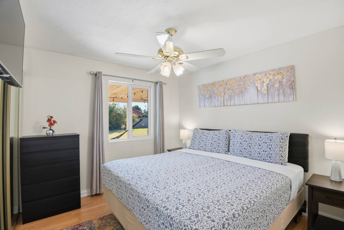 Welcome to a beautifully remodeled 3-bedroom, 2-bath home designed for comfort, space, and easy living. The home features stylish furnishings, a bright living area with leather seating, a large TV, and seamless indoor-outdoor flow to a covered patio with hammock, seating, BBQ grill, and a spacious grassy yard; perfect for relaxing or gathering. Sleeping Arrangements: Bedroom 1: King bed | Sleeps 2 | 45" TV Bedroom 2: Queen bed | Sleeps 2 | 45" TV Bedroom 3: King bed | Sleeps 2 | 45" TV Living Room: Queen air mattress | Sleeps 2 2 bathrooms, one has a Bathtub. The fully equipped kitchen, dining space, and multiple lounging areas make this home ideal for families, couples, or longer stays. Enjoy a quiet cul-de-sac location with parks and walking paths nearby, all while being minutes from shopping, dining, and major freeways. Nearby Attractions: 1. South Mountain Park and Preserve ≈ 15 miles One of the largest urban parks in the U.S., offering hiking, biking, scenic drives, and breathtaking desert sunsets. 2. Usery Mountain Regional Park ≈ 21 miles A desert oasis with miles of hiking and biking trails and stunning views of the Superstition Mountains. 3. San Tan Mountain Regional Park ≈ 21 miles Features wide open desert landscapes with hiking, biking, and horseback-riding trails. 4. Phoenix Zoo ≈ 10 miles A 125-acre zoo with thousands of animals, interactive exhibits, splash areas, and shaded walking paths—perfect for families. 5. Lost Dutchman State Park ≈ 26 miles Known for dramatic mountain scenery, popular hiking trails, and incredible sunrise and sunset views. 6. Desert Botanical Garden ≈ 11 miles Showcases beautiful desert gardens, seasonal exhibits, and iconic cactus collections in a peaceful setting. 7. Old Town Scottsdale ≈ 11 miles A vibrant area filled with trendy restaurants, art galleries, boutique shopping, and lively nightlife. 8. Downtown Chandler ≈ 8 miles A charming district offering great dining, craft breweries, boutique shops, and frequent community events.