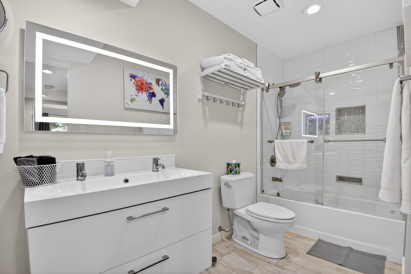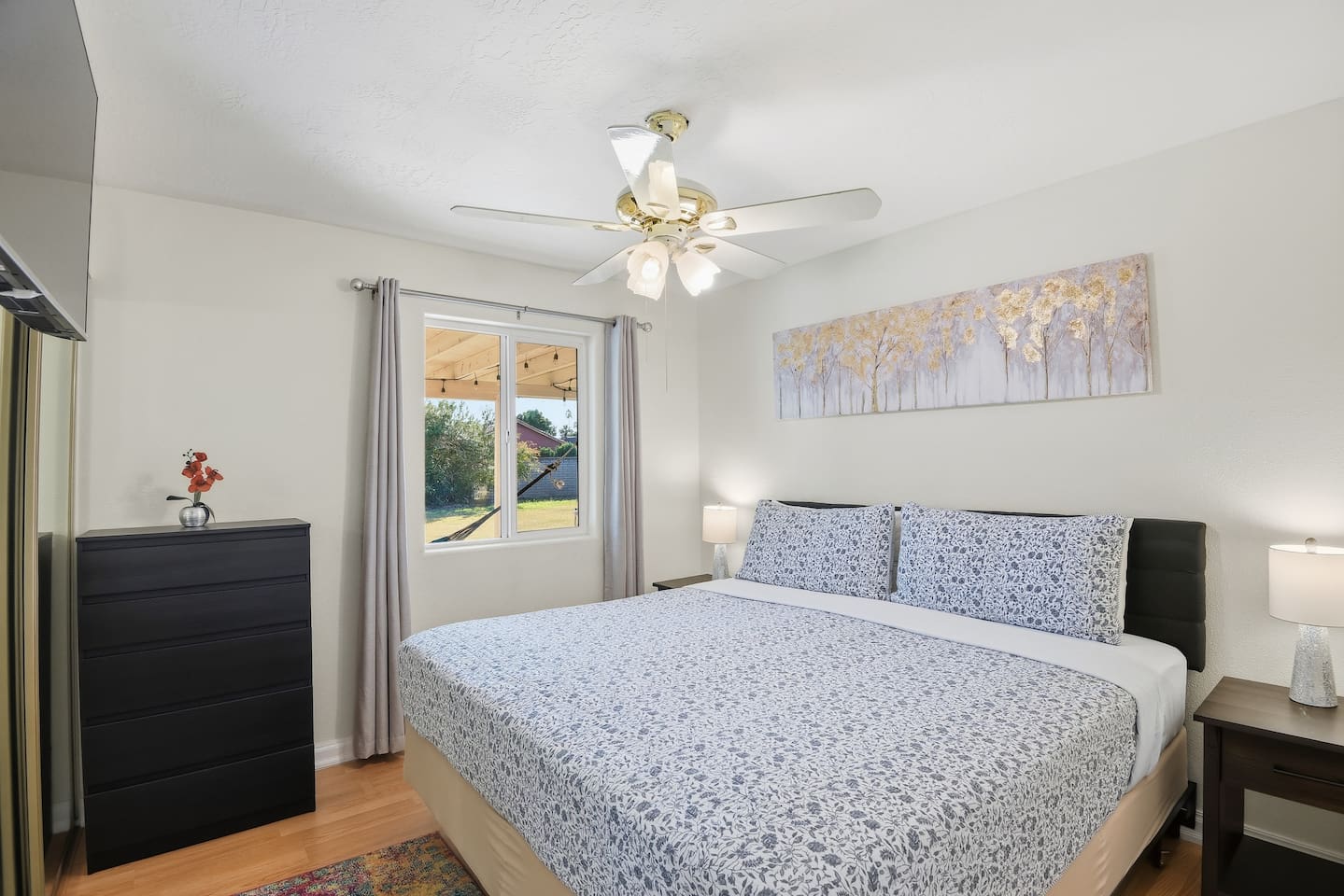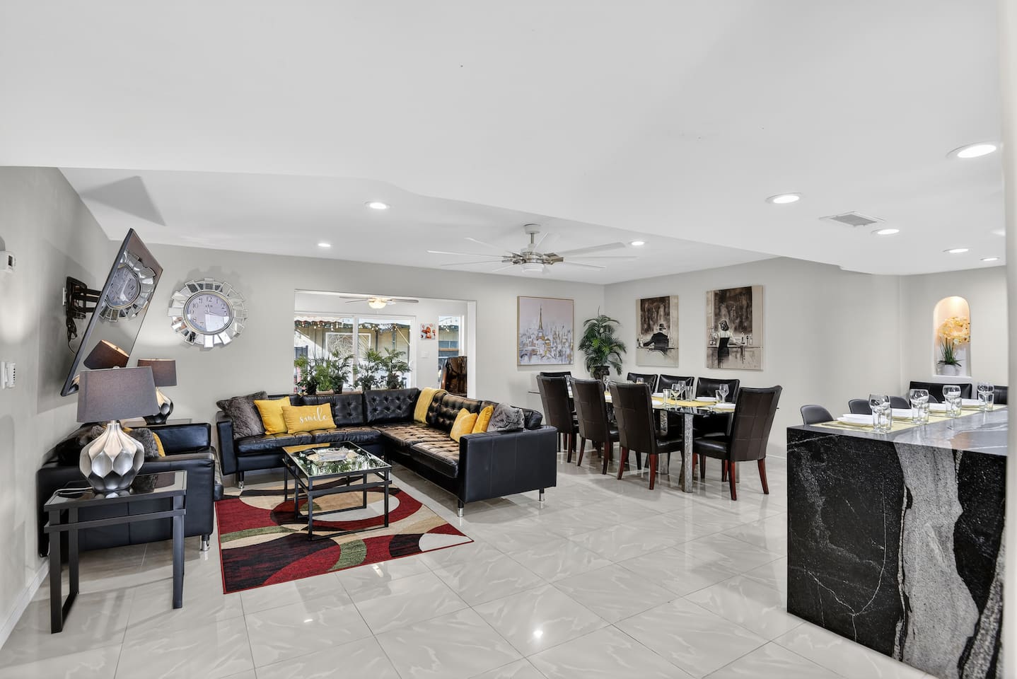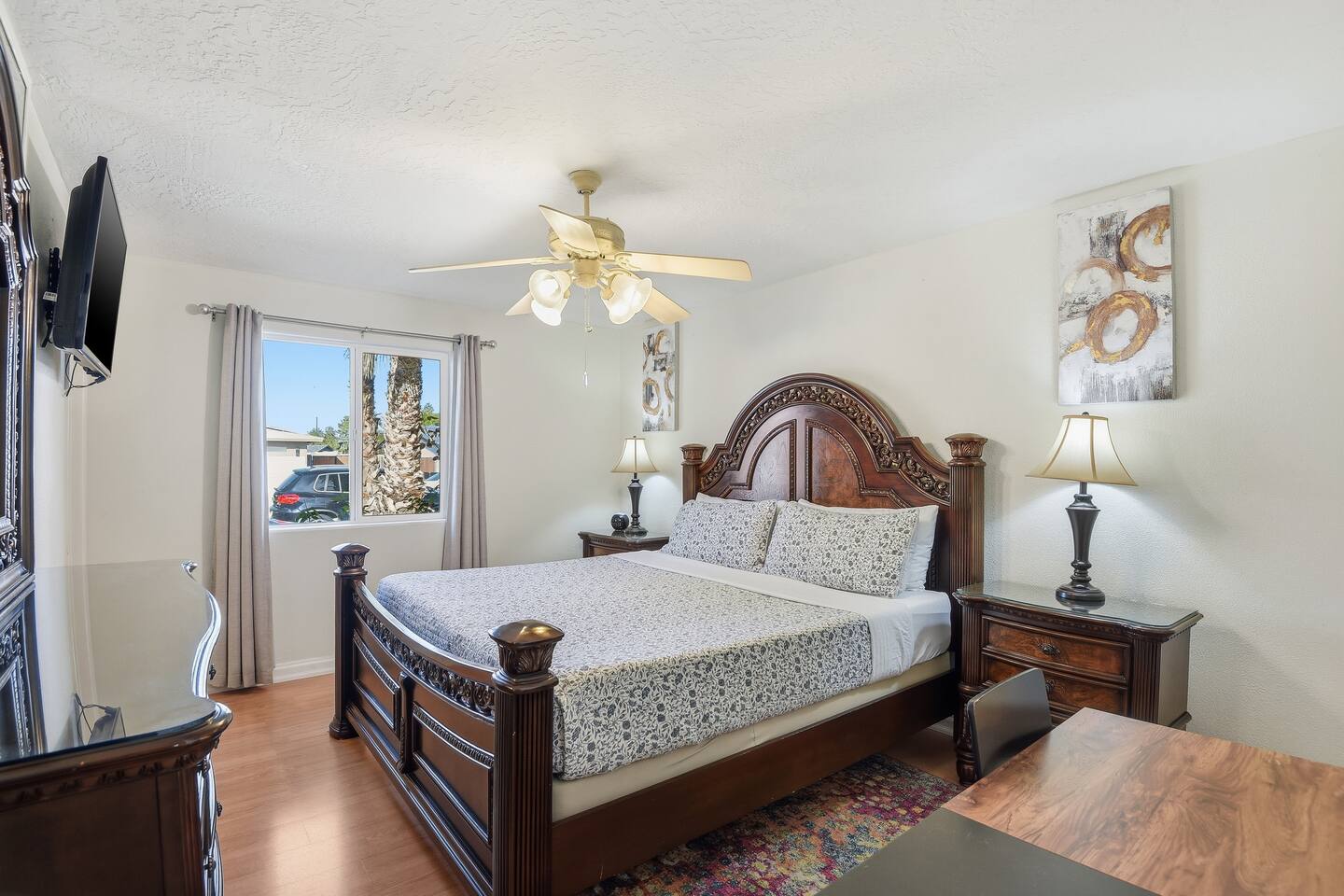 This dual-property listing includes two separate homes rented together for exclusive use. HOME 1 – Large Group Home (5BR / 3BA | Sleeps 16) Designed for entertaining and large groups with expansive indoor and outdoor spaces, a private pool, and multiple sleeping zones. Layout: Bedroom 1 (Top Floor): King | Sleeps 2 | 55” TV Bedroom 2 (Top Floor): King + workspace | Sleeps 2 | 55” TV Bedroom 3 (Top Floor): King + desk | Sleeps 2 | 50” TV Bedroom 4 (Ground Floor): King | Sleeps 2 | 50” TV Bedroom 5 (Ground Floor): Queen | Sleeps 2 | 45” TV Additional Sleeping: Sunroom: 2 sleeper sofas + queen air mattress | Sleeps 4 Living Room: 2 sleeper sofas | Sleeps 2 | 80” TV Highlights: Private swimming pool & resort-style backyard Pool bar with TV, fridge, BBQ, pizza oven & fire pit Multiple indoor & outdoor dining areas Sunroom with flexible sleeping options Fully equipped kitchen with coffee & waffle bar HOME 2 – Modern Comfort Home (3BR / 2BA | Sleeps 8) A stylish, bright home ideal for overflow guests, families, or those wanting extra privacy. Layout: Bedroom 1: King | Sleeps 2 | 45” TV Bedroom 2: Queen | Sleeps 2 | 45” TV Bedroom 3: King | Sleeps 2 | 45” TV Additional Sleeping: Living Room: Queen air mattress | Sleeps 2 Highlights: Covered patio with BBQ, hammock & seating Spacious grassy backyard Fully equipped kitchen & dining area Quiet cul-de-sac location Total Sleeping Capacity Up to 24 guests 8 bedrooms + multiple sleeper options 5 full bathrooms (including bathtubs) Nearby Attractions: 1. Phoenix Zoo ≈ 15 min drive A 125-acre zoo with immersive animal habitats, splash areas, and family-friendly experiences. 2. Desert Botanical Garden ≈ 15 min drive Beautiful desert trails, seasonal exhibits, and iconic cactus collections perfect for photos. 3. Downtown Chandler ≈ 15 min drive Lively district with great dining, craft breweries, boutique shopping, and local events. 4. Old Town Scottsdale ≈ 20 min drive Trendy restaurants, art galleries, shopping, and vibrant nightlife in a Western-style setting. 5. South Mountain Park & Preserve ≈ 25 min drive Over 16,000 acres of hiking, biking, and scenic drives with stunning sunset views. 6. Usery Mountain Regional Park ≈ 20 min drive Miles of hiking and biking trails with sweeping desert views and Superstition Mountain scenery. 7. San Tan Mountain Regional Park ≈ 30 min drive Expansive trails for hiking, biking, and horseback riding surrounded by desert landscapes. 8. Lost Dutchman State Park ≈ 35 min drive Famous for dramatic Superstition Mountain backdrops, scenic hikes, and sunrise/sunset views. 9. Desert Botanical Garden ≈ 15 min drive Stunning desert landscapes, vibrant seasonal exhibits, and unique cactus collections—perfect for a peaceful walk or memorable photos. 10. Old Town Scottsdale ≈ 20 min drive A lively destination with trendy restaurants, boutiques, art galleries, and vibrant nightlife in a charming Western-style setting. 11. Downtown Chandler ≈ 15 min drive Great dining, craft breweries, boutique shopping, and a central plaza hosting year-round festivals and local markets.