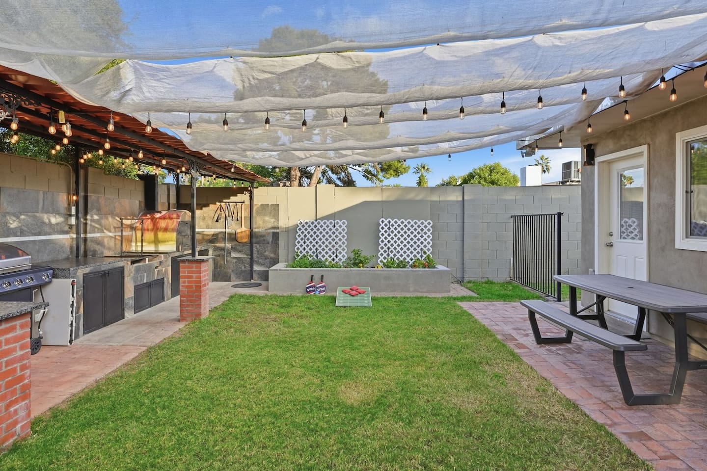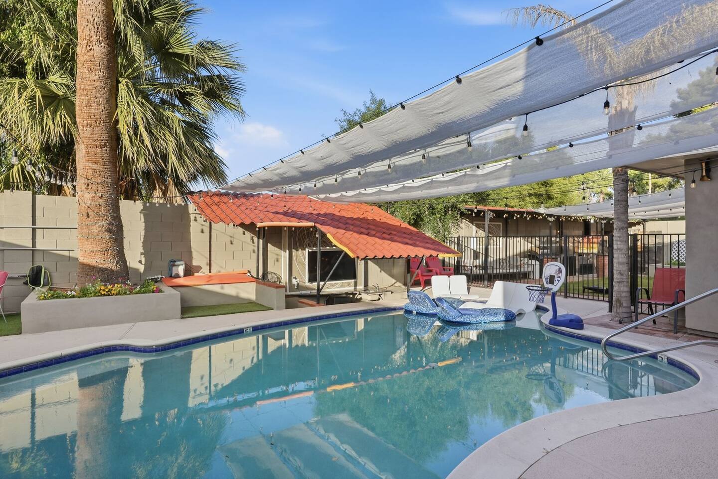 Welcome to the ultimate Mesa group getaway - Book both homes together for the ultimate Mesa group stay! This dual-home setup sleeps up to 24 guests and offers unmatched space, privacy, and amenities. Enjoy a private pool, resort-style backyard, BBQ, pizza oven, fire pit, spacious yards, and multiple living areas across two fully remodeled homes; perfect for families, groups, events, or extended stays near Tempe, golf, dining, and major freeways.